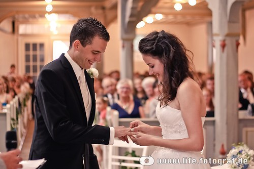 Einer der bewegendsten Momente in der Kirchlichen Trauung, die zwischen 1 und 1,5 Stunden dauert, ist es wenn das Brautpaar mit dem "Ja-Wort", dem Ringetausch und mit dem Kuss in die Ehe startet. Damit nicht die gesamte Hochzeitsgesellschaft mit ihren Kameras und Blitzen die Trauung unterbricht, bieten wir euch an die fotografische Dokumentation zu übernehmen.